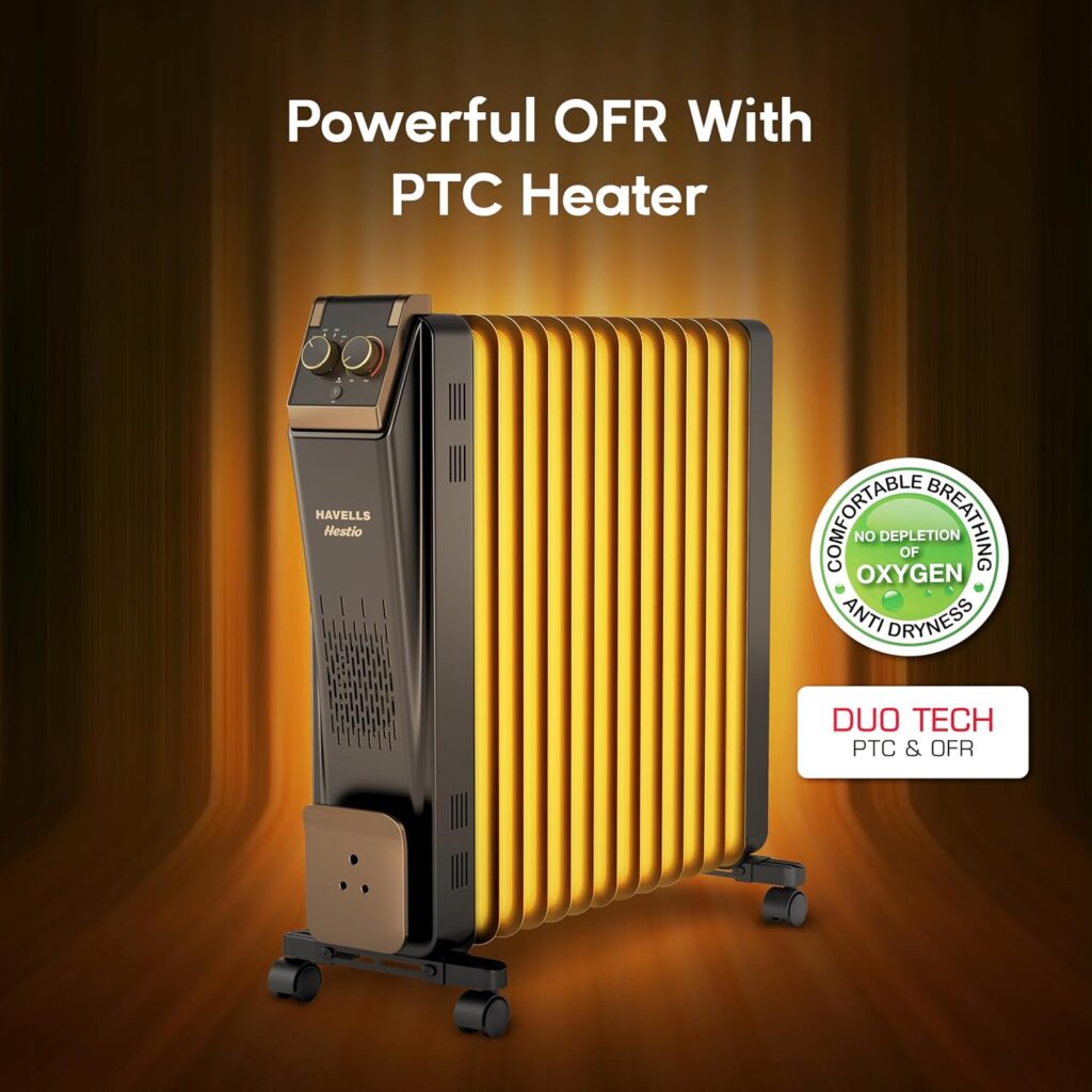 This powerful oil-filled room heater is designed to keep your space warm and comfortable, perfect for chilly winters. With its 13 wave fins, it provides efficient heating for medium to large rooms, ensuring even heat distribution without sudden fluctuations.